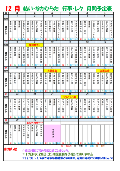 結い・なかひらた 広報誌&レクリエーション月間予定表