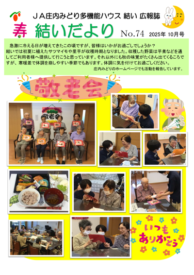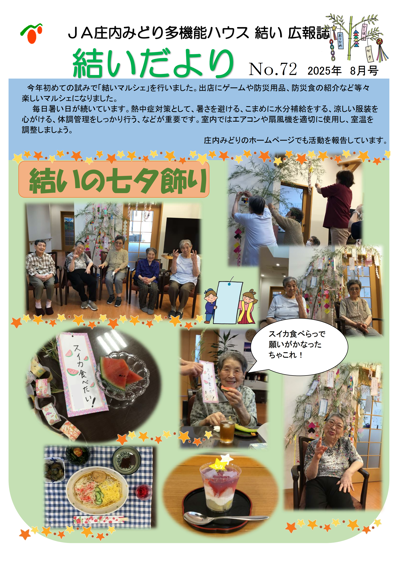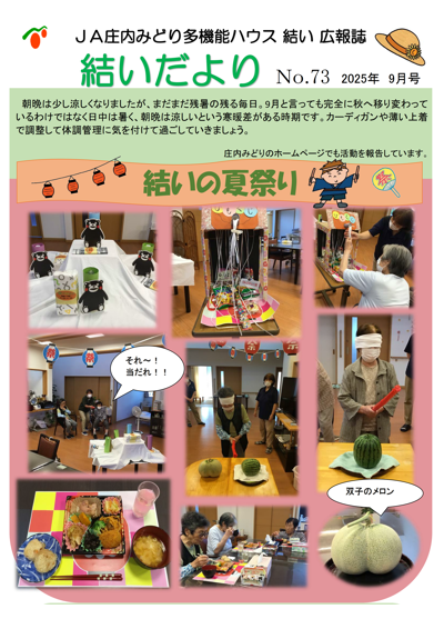 多機能ハウス結い 広報誌 2025年 画像をクリックするとPDFファイルが開きます。 10月 9月 8月 7月 6月 5月 4月 3月 2月 1月 2024年 画像をクリックするとPDFファイルが開きます。 12月 11月 10月 9月 8月 7月 6月 5月 2月 1月