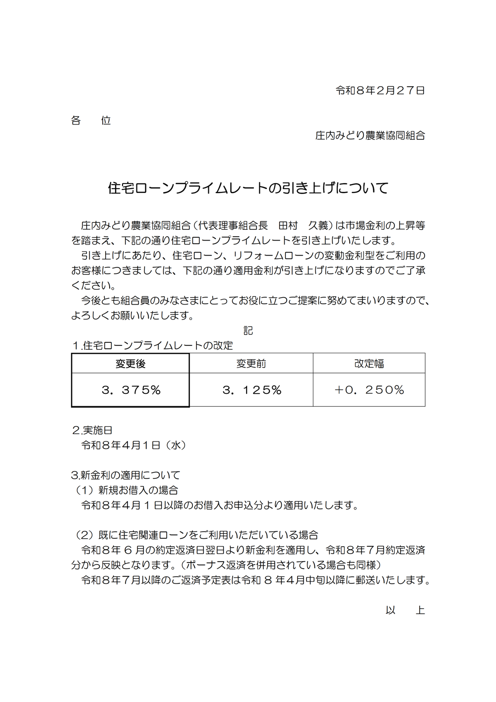 住宅ローンプライムレートの引き上げについて